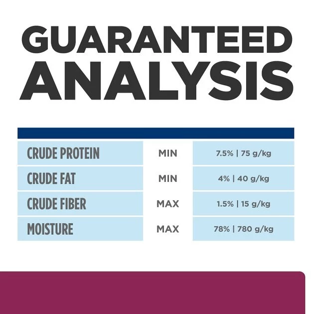 Adjust feeding amounts as necessary to maintain optimal weight. If you are unsure, ask your veterinarian. For best results & safety practices: Cover & refrigerate unused portion. Gradually transition to your pets new food over a 7 day period. Exclusively feed the recommended Prescription Diet dry food, wet food, & treats Keep fresh water available at all times. Split the recommended daily amount into smaller portions and feed throughout the day. Have your veterinarian monitor your pets condition.