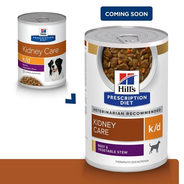 The Hill’s Prescription Diet k/d Kidney Care Beef & Vegetable Stew Canned Dog Food is clinically proven nutrition that can help transform your pet’s life. As pets age, damage to the kidney tissues may occur, which affects the kidney’s role to function properly and filter toxins and waste from the blood. It is irreversible, and will lead to further loss of kidney function. This may also decrease their appetite, which could eventually result in the loss of muscle mass. And so the Hill’s nutritionists and veterinarians created this special diet, which supports your dog’s kidney function and helps to sustain muscle mass—in fact, the nutrition of k/d is clinically tested to improve and lengthen the quality of life.
