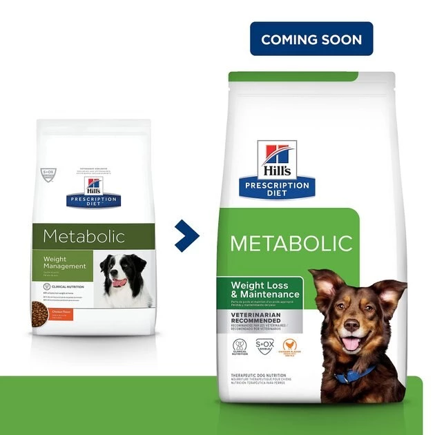 Nourish your furry best friend with the complete and balanced nutrition of Hill’s Prescription Diet Metabolic Weight Management Chicken Flavor Dry Dog Food. Developed and specially formulated by Hill’s nutritionists and veterinarians to support your dog’s weight management. It works naturally with your dog’s unique metabolism to help him lose weight and keep it off. The exclusive formula helps your pal feel full and satisfied between meals with its unique fiber blend from fruits and vegetables. Contains a synergistic blend of ingredients, plus powerful antioxidants to support your pal’s vitality and holistic health. With the S+OXSHIELD seal of confidence, the Metabolic formula meets specific nutrient standards shown to promote a urinary environment that helps reduce the risk of struvite and calcium oxalate crystals. Help your pal lose weight so you can play more and provide him overall health and longevity.