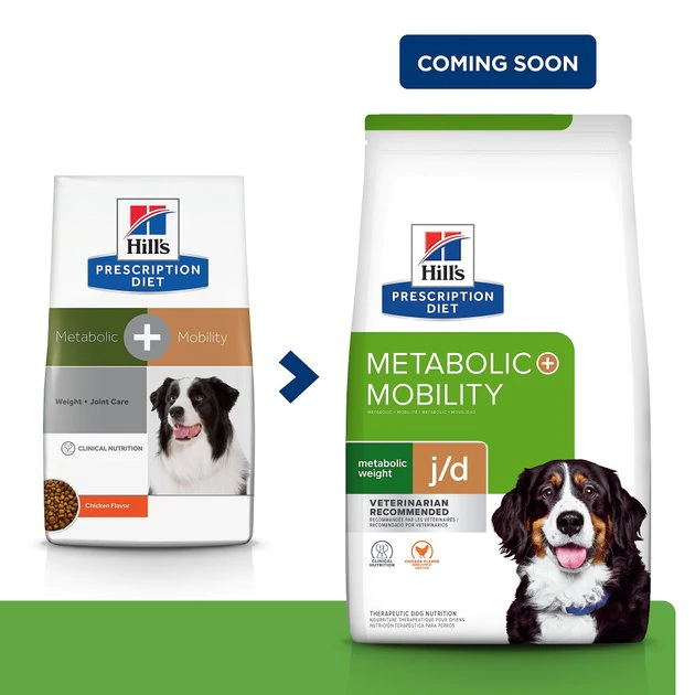 Nutritionists & veterinarians developed Prescription Diet Metabolic + Mobility Canine clinical nutrition specially to help manage your dog’s weight and joint health. In fact, Metabolic + Mobility Canine has clinically proven nutrition to improve mobility in as little as 21 days and reduce body weight by 13% in 60 days.