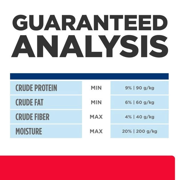 - Won’t compromise the Prescription Diets of b/d Canine, c/d Canine, g/d Canine, h/d Canine and k/d Canine.
